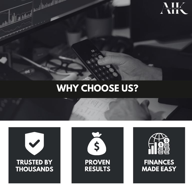 At AIK Solutions, we guide you step-by-step to improve your finances and regain confidence with your money.